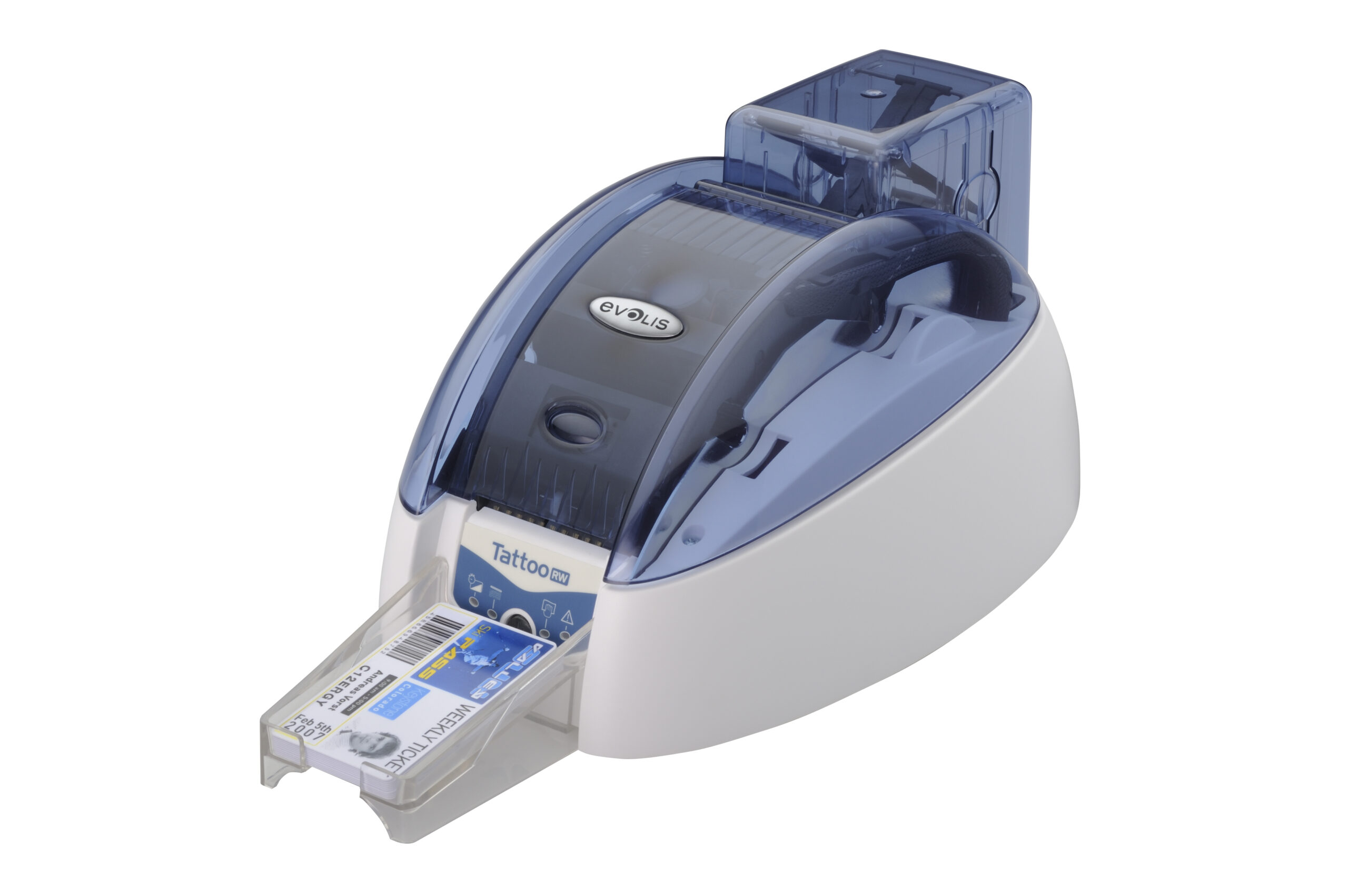 De printer is standaard uitgerust met USB- en Ethernet-aansluitingen voor eenvoudige integratie in uw netwerk. Bovendien kan de Tattoo 2 RW worden geconfigureerd met optionele encoders voor magneetstrips of contactloze chips (zoals Mifare of DESFire), waardoor u visuele informatie en digitale data in één handeling kunt synchroniseren.