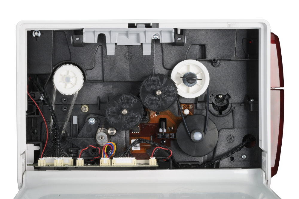 Ontdek een schat aan geavanceerde functies geladen in een moderne en toch compacte ontwerp. De kaart feeder en uitvoerlade zijn ontworpen aan de voorzijde van de printer samen met de handmatige invoer en het bedieningspaneel met LEDs.
